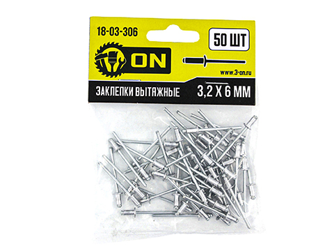 Заклёпки вытяжные ON , алюминиевые, 3,2х6мм 50шт., (уп.) |